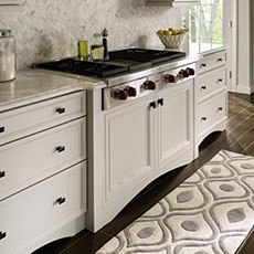 Create a statement at a sink or cooktop area by flanking it with decorative cabinet legs that suit your style. If you enjoy furniture-type detailing, your cabinet designer might suggest a decorative foot application to the toekick space on selected cabinets.