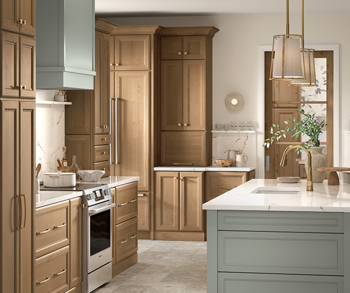 With its four work surfaces and a butler’s pantry, this kitchen is a dream for those who love to entertain! The butler's pantry lets you hide all the mess from your meal prep, keeping the island top clear for serving. The openness and flow of this kitchen layout ensures that all guests and family members can be part of the party. Smart!